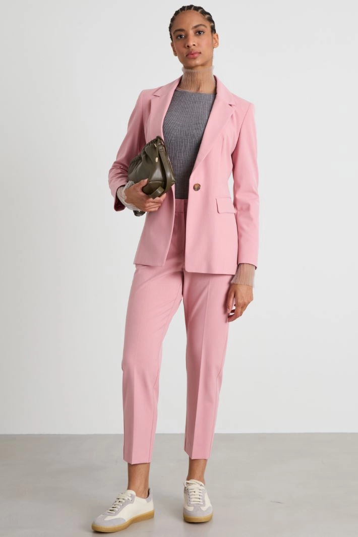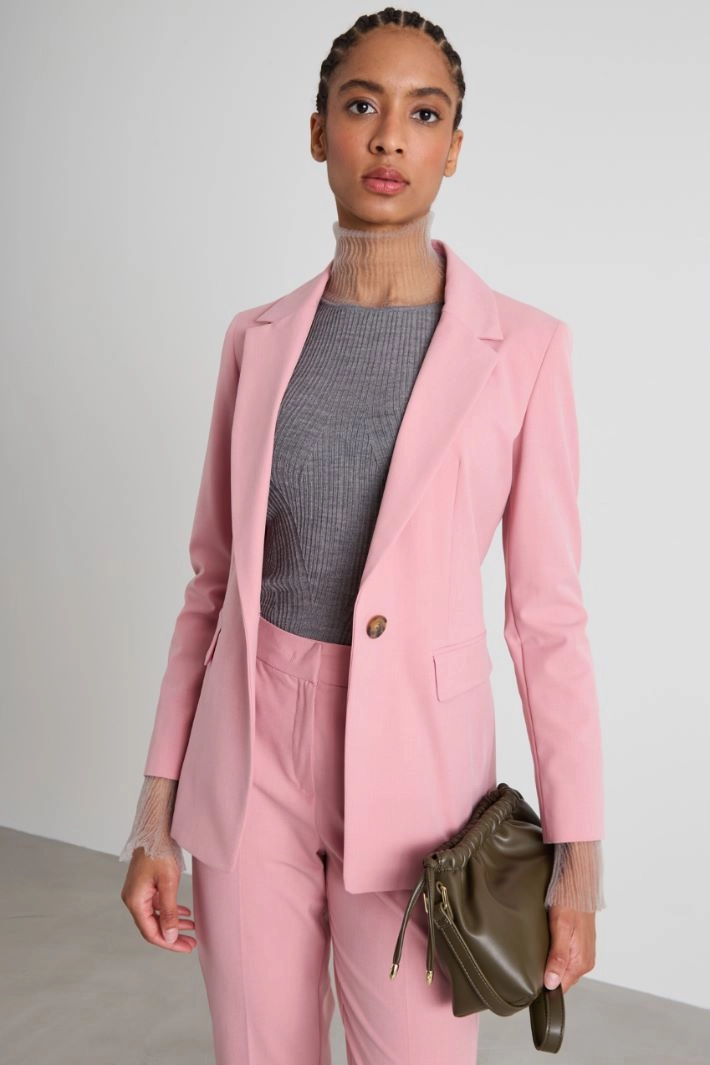Fitted blazer in viscose blend batavia, with lapel collar, long sleeves and flap welt pockets. Button fastening. Lined.