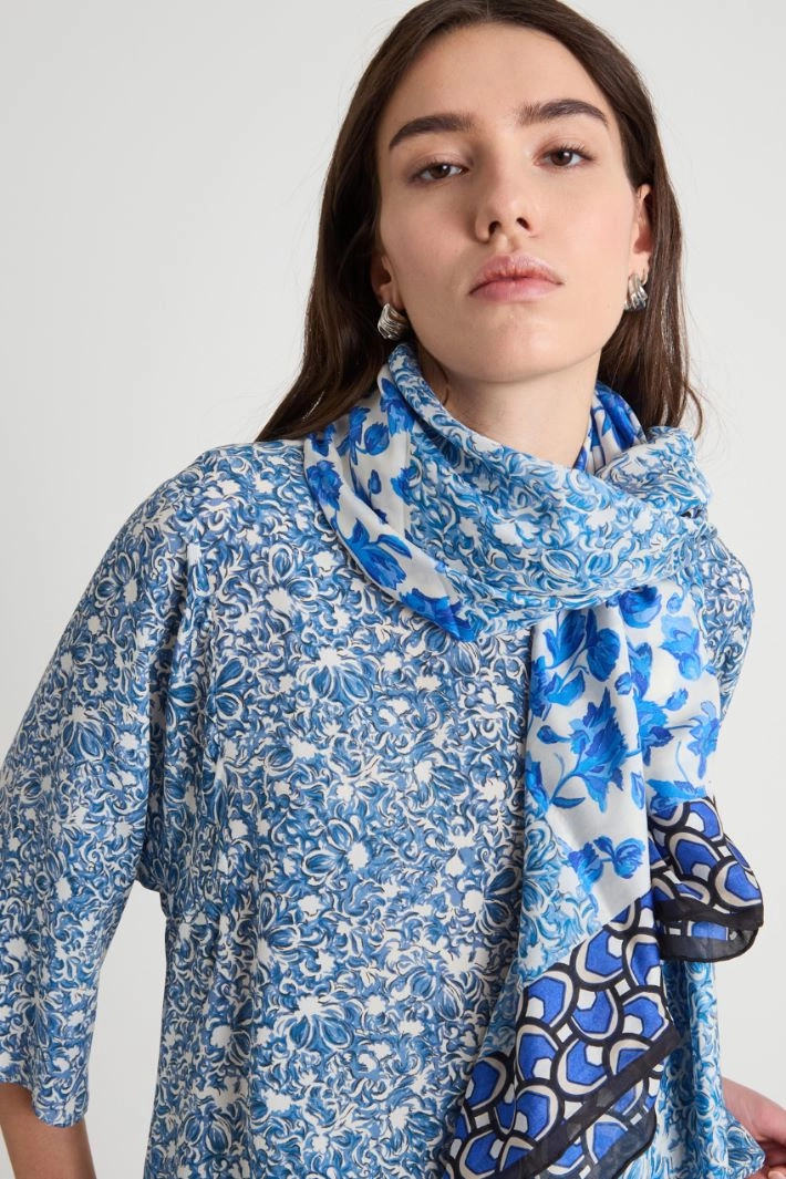Square shawl crafted in patterned silk-blend.