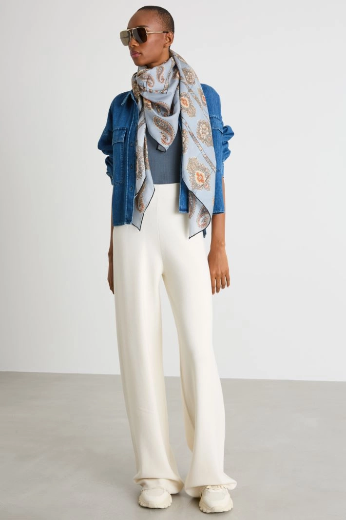 Square shawl crafted in patterned silk-blend.