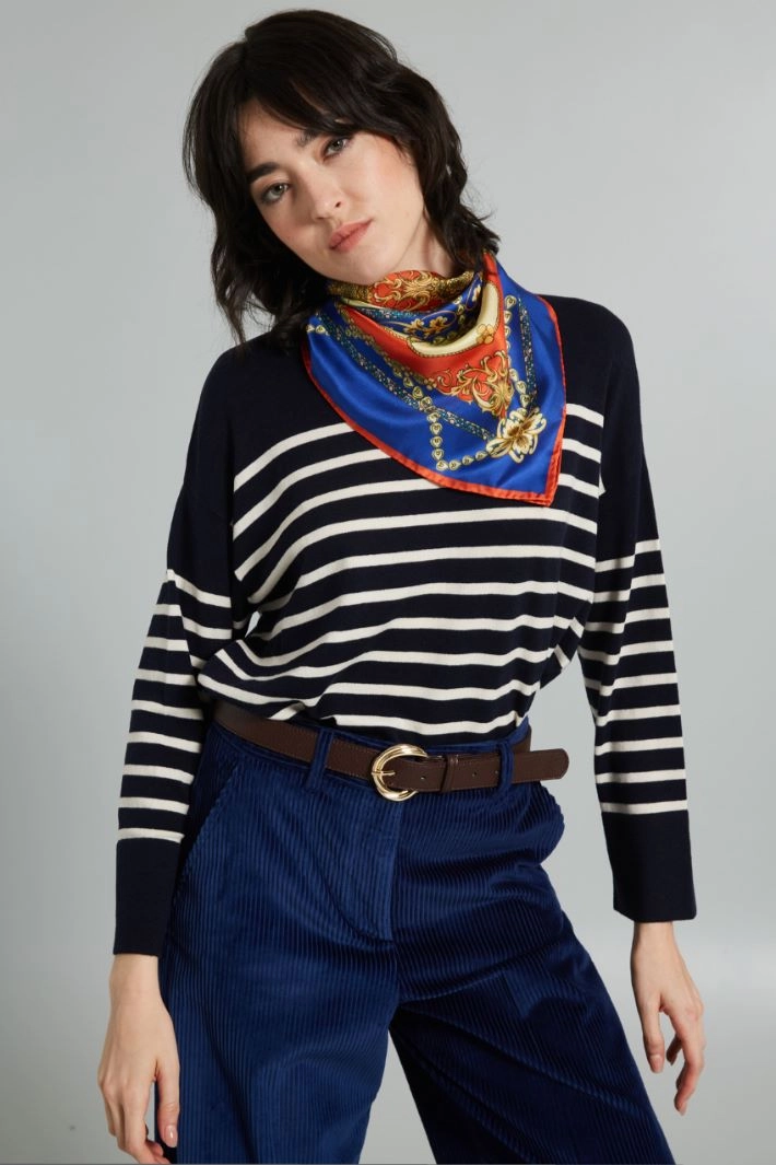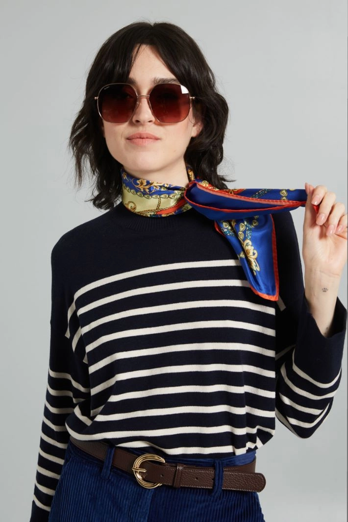 The measurements of the scarf are: Length 65 cm and Height 65 cm.