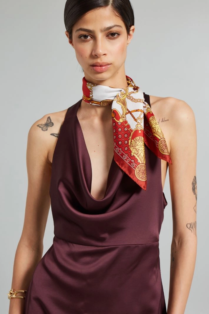 The measurements of the scarf are: Length 65 cm and Height 65 cm.