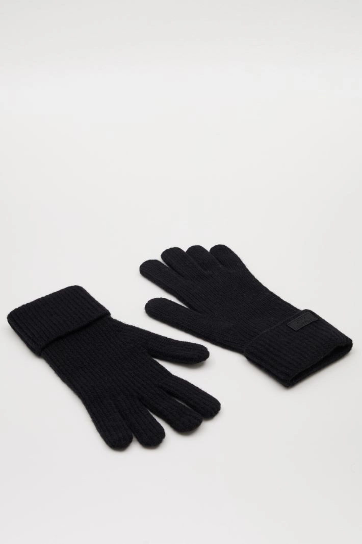 Gloves in pure wool yarn, with ribbed knit and turned edge.